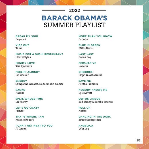 Quando as mães de Bill Gates e de Barak Obama dizem que eles não são todo mundo, eles nem discutem. Não são mesmo. Mas, pegando carona no “todo mundo é influenciador", vi por esses dias que Obama divulgou sua playlist de verão.