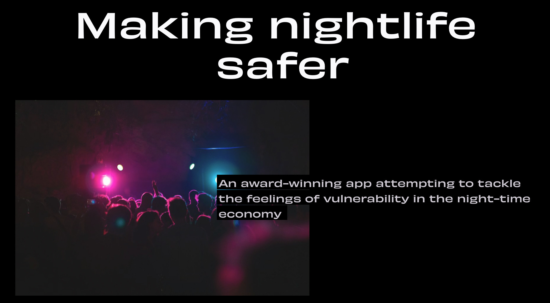 No aplicativo, os usuários adicionam pessoas a um círculo de amizade para criar sua própria rede de segurança privada. À medida que os membros do círculo se movem por um local, sua localização é atualizada no aplicativo, permitindo que seus amigos os encontrem. Quando alguém quer sair, eles podem alertar seu círculo e reservar um táxi para chegar em casa com segurança, bem como notificar os outros assim que chegarem. Se eles se sentirem inseguros, os usuários podem pressionar um botão SOS para alertar imediatamente seu círculo sobre sua localização